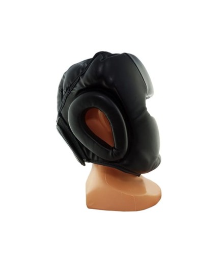 Kask SPARRING-PRO PU został wykonany z bardzo wytrzymałej skóry syntetycznej. Kask posiada ochronę policzków i brody, dzięki czemu świetnie nadaje się do sparingów. Górna część ochraniacza posiada dodatkową ochronę z grubej warstwy pianki, która zabezpiecza przed kopnięciami i uderzeniami z łokcia. Wewnętrzna część kasku pokryta jest miękkim materiałem syntetycznym, który zapobiega ślizganiu i przesuwaniu się kasku.