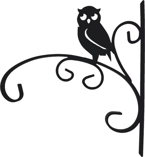 WIESZAK NA DONICZKĘ 30x28cm SOWA CZARNY OZDOBNY UCHWYT NA KWIATY
