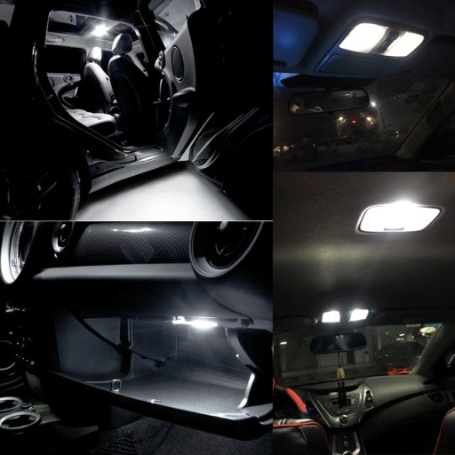 14 sztuk: 2 x T10 1SMD, 2 x T10 12104SMD, 2 x T10 5050 5SMD, 2 x 31mm 5050 4SMD, 2 x 41mm 1210 16SMD, 2 x 36mm 5050 3SMD, 2 x 1157 1206 22SMD