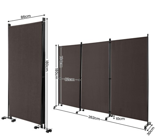 Szukasz przegrody pokoju, którą można łatwo przenosić? Sprawdź wspaniały 3-panelowy parawan Giantex! Rama parawanu wykonana jest z wysokiej jakości metalu, który charakteryzuje się dobrą stabilnością. Metal został poddany procesowi malowania proszkowego, który zapewnia doskonałą odporność na rdzę. Ponadto powierzchnia parawanu wykonana jest z wysokiej jakości tkanego włókna, które jest nie tylko odporne na zużycie, ale także nie przepuszcza światła. Z kolei parawan Giantex wyposażony jest w osiem zamykanych uniwersalnych rolek, dzięki którym można go swobodnie przesuwać. Każdy panel można stosować pojedynczo lub łączyć ze sobą za pomocą zatrzasków łączących.