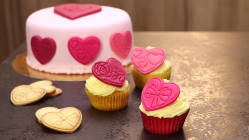 Zestaw plastikowych wykrawaczek z pieczątkami do lukru plastycznego - Serduszka 3szt
