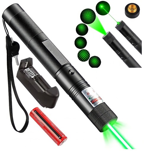 ➡️Wysokiej mocy wskaźnik laserowy wykorzystujący do pracy skoncentrowaną wiązkę światła o barwie zielonej.