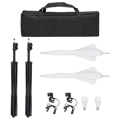 - Znakomite oświetlenie: poprzez zastosowanie lamp świecących światłem dziennym o temperaturze barwowej 5500 Kelwinów można uchwycić obiekt w naturalny sposób. Dwie białe parasolki zapewniają miękkie światło, co pozwala zniwelować ostre cienie.