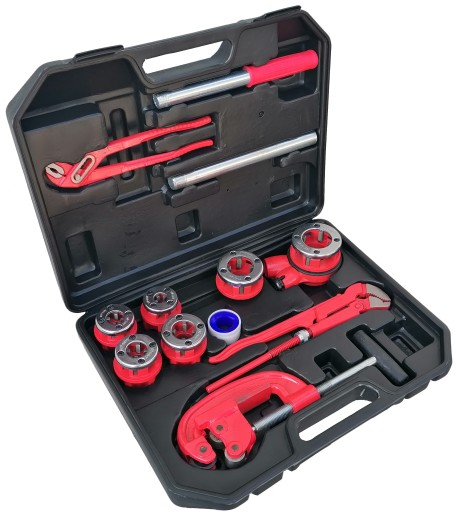 Zestaw komplet narzędzi hydraulika do obcinania gwintowania rur klucze 12el