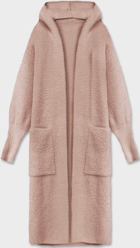 Długa wełniana narzutka alpaka z kapturem ciemny beż (M105) - Uniwersalny