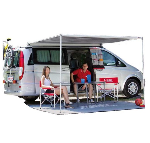 Kompaktowa markiza posiada wytrzymałą konstrukcję wykonana z lekkiego, anodyzowanego aluminium, ręcznie rozkładana