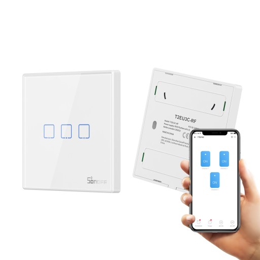 Włącznik Sonoff posiada funkcję ustawienia harmonogramu, za pomocą którego Ty decydujesz kiedy gasną lub zapalają się światła. T2EU3C współpracuje również z przełącznikami ściennymi Sonoff TX, które pozwalają na sterowanie światłem z dwóch różnych pozycji bez konieczności okablowania. Przełącznik umożliwia również kontrolowanie oświetleniem w kilku pomieszczeniach jednocześnie.