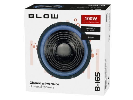 Uniwersalny głośnik samochodowy 6,5" Woofer marki Blow o maksymalnej mocy 100W. Dzięki wysokiej jakości wykonania oraz atrakcyjnej kolorystyce głośnik powinien idealnie wpasować się do wnętrza każdego auta. Wyjątkowo duża średnica oraz dobre parametry podzespołw zapewniają czysty i dynamiczny dźwięk oraz szeroki zakres częstotliwości oferując niezwykłe doznania muzyczne.