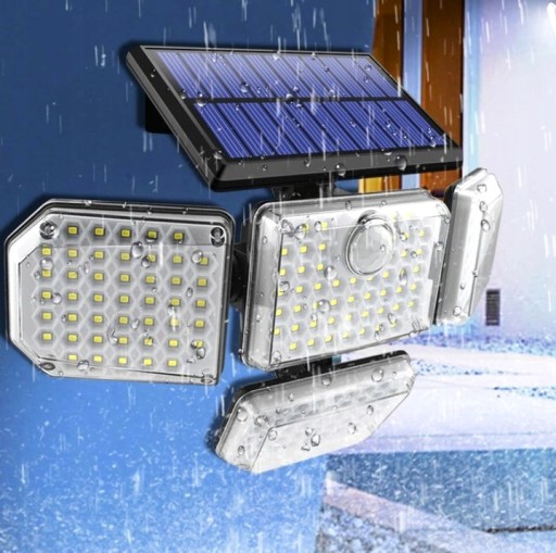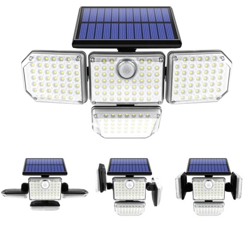 - SPECYFIKACJA - kolor: czarny; materiał: ABS, ilość LED: 171; wodoodporność: IP65; zasięg czujki ruchu: 5m; bateria: 2400mAh; czas pracy: wiosna lato: 6-8 h; zima: 8-10 h; moc led: 9W; regulacja kąta nachylenia panelu słonecznego: góra / dół: 120 stopni, na boki: 160 stopni; regulacja kąta nachylenia bocznych lamp: góra/ dół: 160 stopni, na boki: 180 stopni; regulacja kąta nachylenia dolnej lampy: góra/ dół: 180 stopni, na boki: 160 stopni; wymiaru panelu: 9 x 15 cm; wymiary lampy (szer/wys): 20x29x10 cm; waga: 0,465kg; waga w opakowaniu: 0,600 kg.