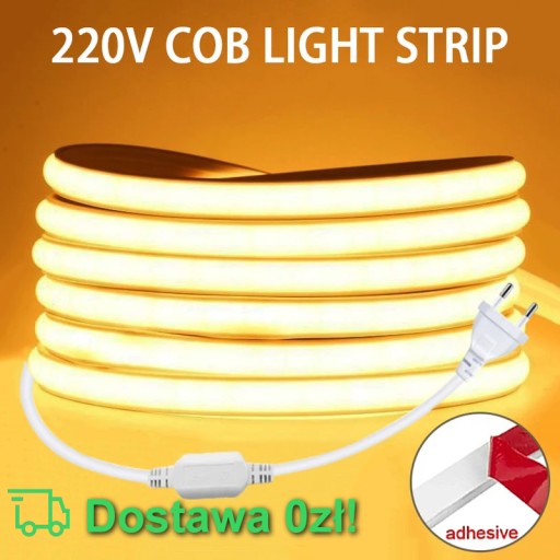 Wodoodporna taśma LED COB 220V z wtyczką UE – poszukujesz efektywnego rozwiązania do oświetlenia? Nasza elastyczna i łatwa w montażu taśma LED o wysokim stopniu jasności stanie się idealnym wyborem zarówno do użytku wewnętrznego, jak i zewnętrznego.