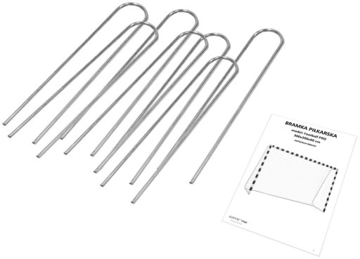 - Zestaw zawiera: metalowe profile, śruby, klucz, imbus, instrukcję w języku polskim, materiał z siatką piłkarską, kotwy mocujące do podłoża, sznurek