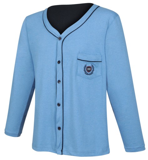 Góra piżamy rozpinana, obszyta efektowną lamówką.