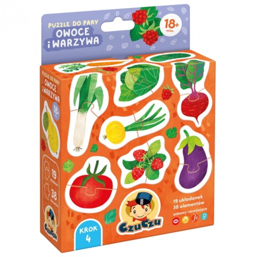 Puzzle do pary Owoce i warzywa to edukacyjny zestaw, który zawiera 19 kolorowych, dwuelementowych układanek!