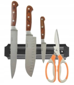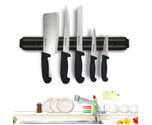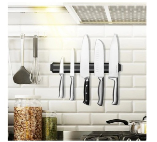 Listwa magnetyczna wyposażone w mocne magnesy – dzięki niej możemy zawiesić na ścianie noże, przybory kuchenne lub inne metalowe przedmioty co sprawia, że możesz łatwo sięgać po te rzeczy w czasie pracy.