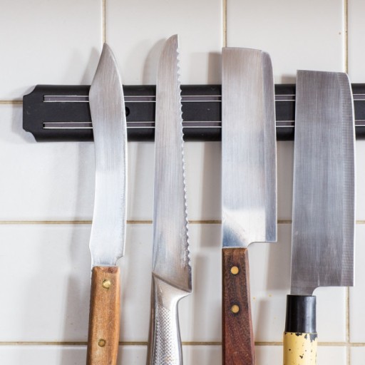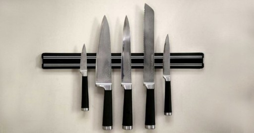 Magnetyczny stojak na noże zabezpiecza ostrza noży, ponieważ nie ocierają się o siebie w szufladzie.
