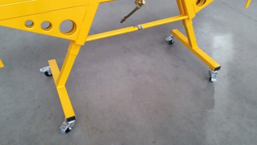 - UKŁAD JEZDNY ZAGINARKI – zastosowanie obrotowych zestawów kołowych z hamulcem umożliwia swobodne przemieszczanie zaginarki.