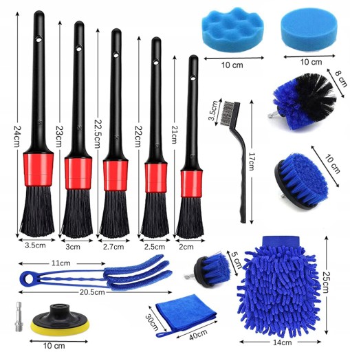 DETAILING ZESTAW PĘDZLI i AKCESORII DO CZYSZCZENIA AUTA SAMOCHODU 22 EL