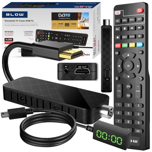 Wysokiej jakości dekoder do odbioru programw cyfrowych telewizji naziemnej BLOW DVB-T2 6000FHD mini . Urządzenie wyposażone zostało w szereg praktycznych funkcji oraz estetyczny, numeryczny wyświetlacz.