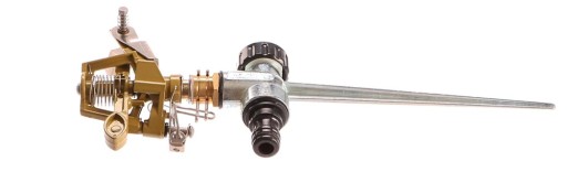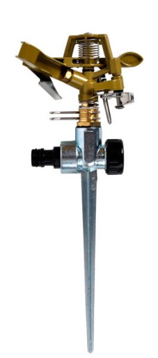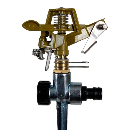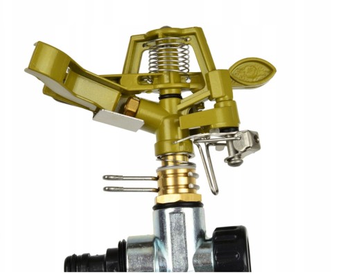 Zraszacz ogrodowy pulsacyjny 360° Solidny metalowy zraszacz pulsacyjny. Średnica zraszania wynosi maksymalnie 24 m, w zależności od ciśnienia strumienia wody. Zraszacz wyposażony w adapter pozwalający na podłączenie węża za pomocą szybkozłączki w szybki i łatwy sposób. Powierzchnia nawadniania od 30 do 360° regulowana za pomocą dwóch pierścieni. Wyjątkową zaletą tego zraszacza jest cicha praca i efektywny strumień wody. Regulowany strumień wody w zależności od potrzeb - od strumienia do rozproszonej mgiełki. Cechy produktu: stalowa głowica zraszająca regulacja strumienia wody oraz kąta zraszania uniwersalne przyłącze do szybkozłączek maksymalna średnica zraszania- 24m