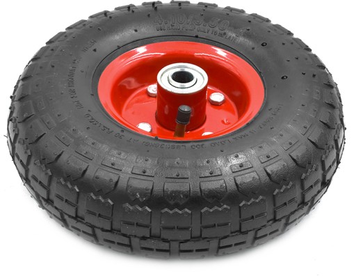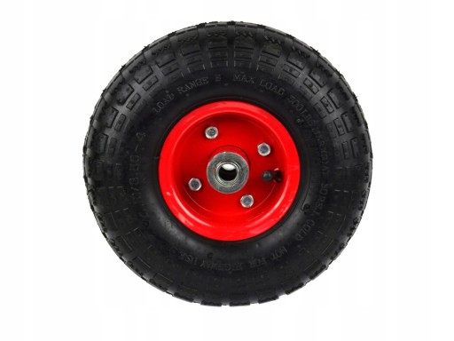 Koło do wózka 4.10 / 3.50 - 4 2PR Koło do wózka pompowane 2PR o maksymalnym obciążeniu do 136 kg. Wytrzymała metalowa felga malowana proszkowo zapewnia podwyższoną stabilność. Całość wykonana z wysokiej jakości materiałów. Specyfikacja techniczna: Średnica zewnętrzna koła 260 mm Szerokość opony 81 mm Średnica wewnętrzna koła 125 mm Szerokość piasty 79 mm Otwór na ośkę 16 mm Łożyskowanie kulkowe Ilość płócien w oponie 2 Materiał wykonania guma, felga stalowa Maksymalne obciążenie 136 kg Ciśnienie maksymalne 2,1 bar / 30 psi Wentyl samochodowy