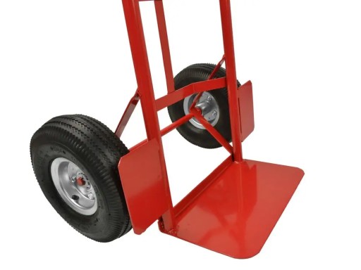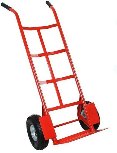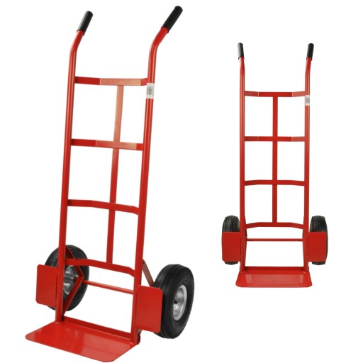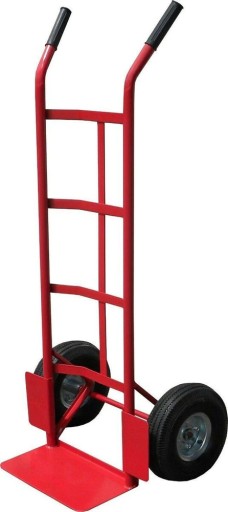 Wózek transportowy 200kg 200x350mm czerwony Wózek transportowy 200 kg. Przeznaczony do przewożenia różnego rodzaju towarów których waga nie przekracza 200 kg. Dodatkowo wzmocniona rama wózka wykonana została z rur o średnicy 25 mm. Cechy produktu: Maksymalne obciążenie: 200 kg Wymiary platformy: 200 x 350 mm Wysokość: 1160 mm Długość: 460 mm Szerokość(góra / dół): 390 / 540 mm Kolor: czerwony Średnica kółka: 260 mm Szerokość kółka: 85 mm Średnica wewnętrzna piasty: 20 mm