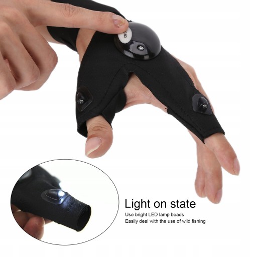 Funkcja:1. Światła LED i elastyczna tkanina oraz wydłużone nylonowe paski, światło wytwarzane przez rękawiczki z latarką LED bez palców jest bardziej ukierunkowane, nawet nie odstraszając dzikiej przyrody, mocne lekkie rękawiczki zapewniają odpowiednie światło, abyś mógł wygodnie wykonywać swoje obowiązki w nocy.
