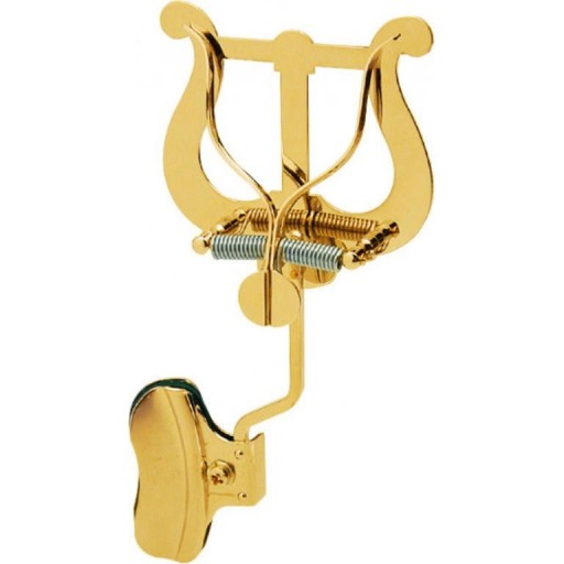 Lirka marszowa na nuty do puzonu mocowana na czarę, z dużym pulpitem, mosiężna w kolorze złotym