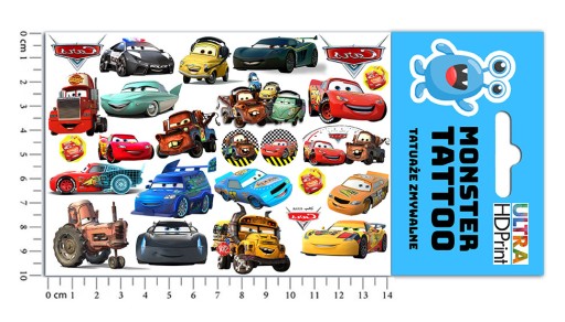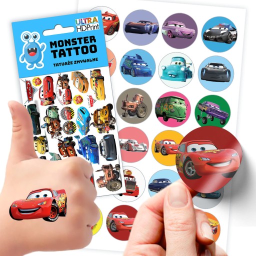 ZESTAW NAKLEJKI + TATUAŻE CARS AUTA ZYGZAK