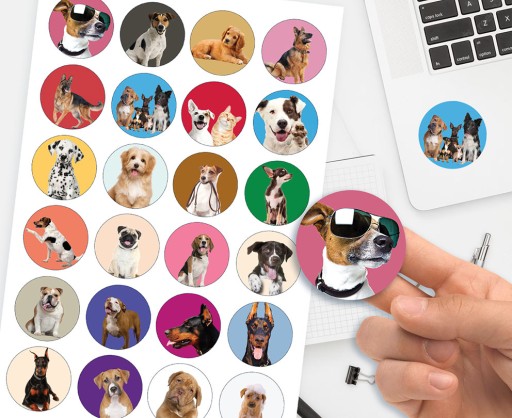 W zestawie otrzymujesz arkusz A4 zawierający aż 24 naklejki o średnicy 40mm.