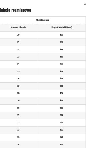 Tabela rozmiarów