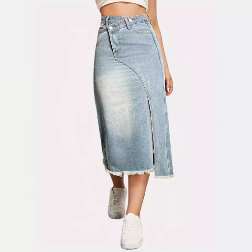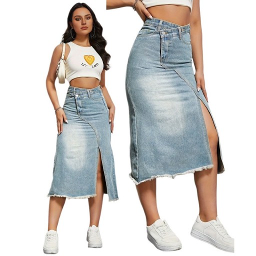 2024 Новинка КЛАССИЧЕСКАЯ ДЛИННАЯ ДЖИНСОВАЯ ЮБКА С РАЗРЕЗОМ МИДИ