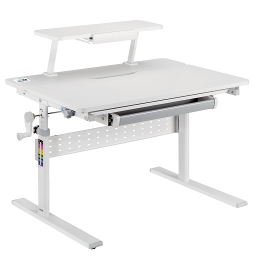 Ergonomiczne biurko z regulacją wysokości umożliwiającą dostosowanie do wzrostu dziecka, dzięki czemu biurko będzie rosło razem z nim.