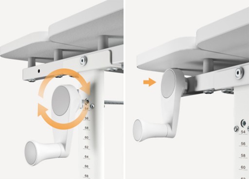 - Wyposażone w odłączoną korbę do regulacji wysokości w zakresie od 54 do 76 cm