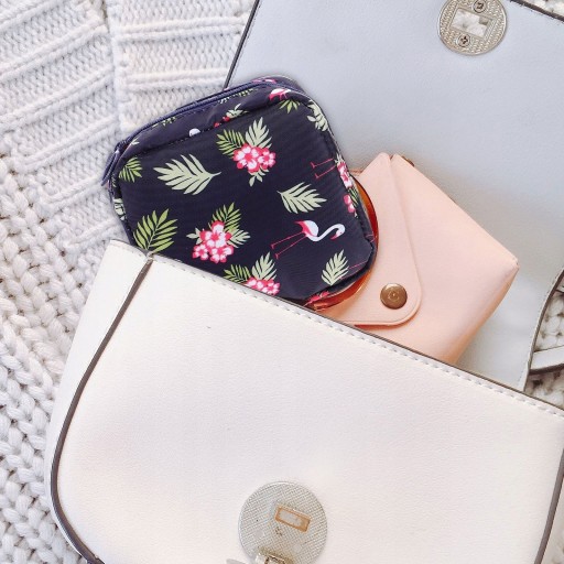Doskonały do trzymania podpasek higienicznych, wkładek laktacyjnych, pieluch, a także do organizowania biżuterii, kart kredytowych itp.