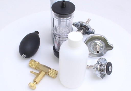 - W przypadku uszkodzonej uszczelki pod głowicą lub samej głowicy część gazów spalinowych. zawierających m.in. CO2 trafia do układu chłodzenia. Zasada działania przyrządu opiera się właśnie na pomiarze zawartości CO2 w układzie chłodzenia. Płyn reakcyjny w komorze testera będzie reagował z gazami z układu chłodzenia i w przypadku zwiększonej zawartości CO2 zmieni barwę. Dwukomorowa konstrukcja przyrządu (z filtrem pomiędzy komorami) pozwala na odseparowanie pozostałości w pierwszej komorze (np. kropel płynu chłodniczego). które mogłyby negatywnie wpłynąć na wynik testu.