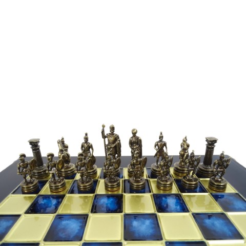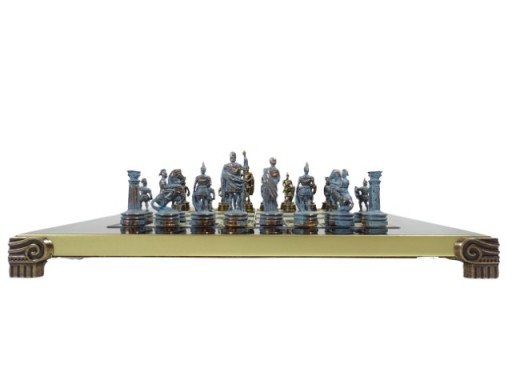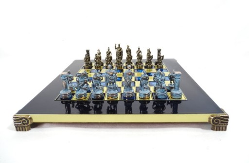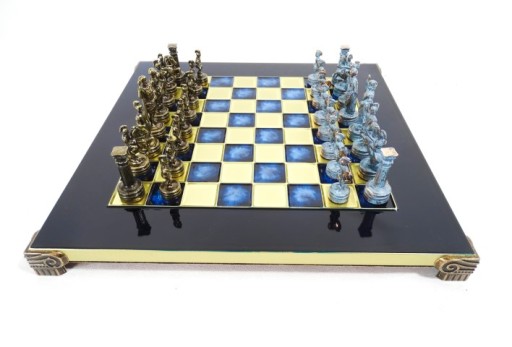 Ekskluzywne szachy mosiężne - okres grecko-rzymski S3BBLU 28x28cm