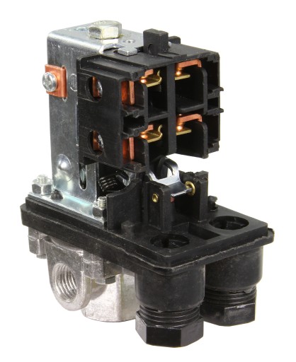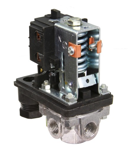 Wyłącznik ciśnieniowy, presostat na 230V do wszystkich kompresorów o silnikach na 230V. Gwinty połączeniowe 1/4' oraz przyłącz 6mm-wężyka lub gwint 1/8' (nakrętka) umożliwia połączenie z małymi kompresorami, zazwyczaj o pojemnościach butli 24, 50 litrów. Posiada możliwość regulacji ciśnienia załączanie i wyłączania.