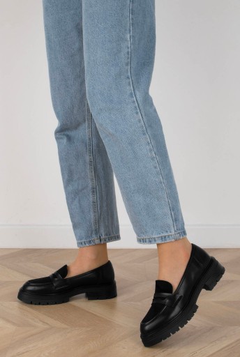 MOKASYNY PÓŁBUTY CZARNE WSUWANE NA PLATFORMIE SKÓRZANE 37