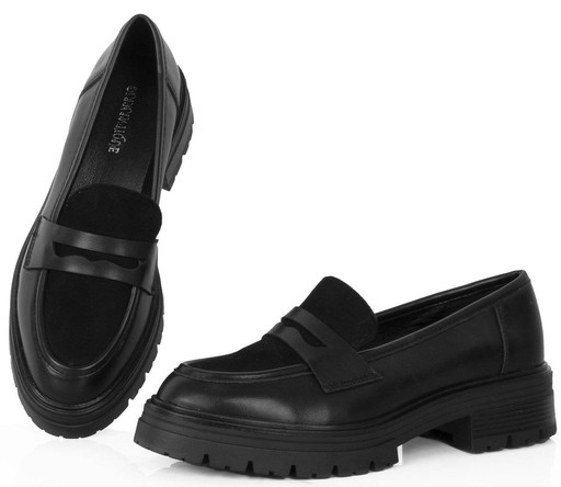 8007 CZARNE MOKASYNY KLASYCZNE WSUWANE SKÓRZANE NA PLATFORMIE 40