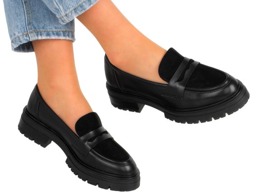 8007 CZARNE MOKASYNY KLASYCZNE WSUWANE SKÓRZANE NA PLATFORMIE 41