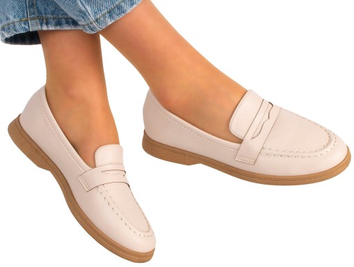 8009 BEŻOWE MOKASYNY PÓŁBUTY DAMSKIE PŁASKIE 38