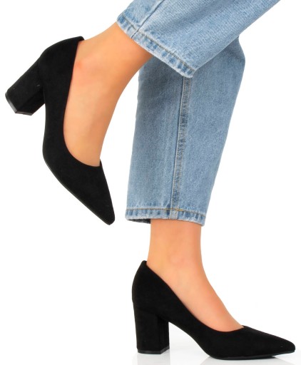 8025 CZARNE CZÓŁENKA ZAMSZOWE NA SŁUPKU W SZPIC KLASYCZNE 39
