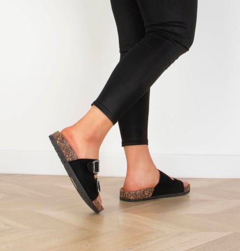 ЧЕРНЫЕ ШЛЕПАНКИ С ПРЯЖКАМИ НА ПРОБКЕ 39