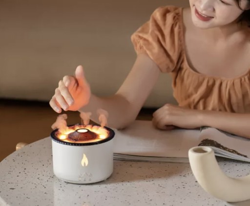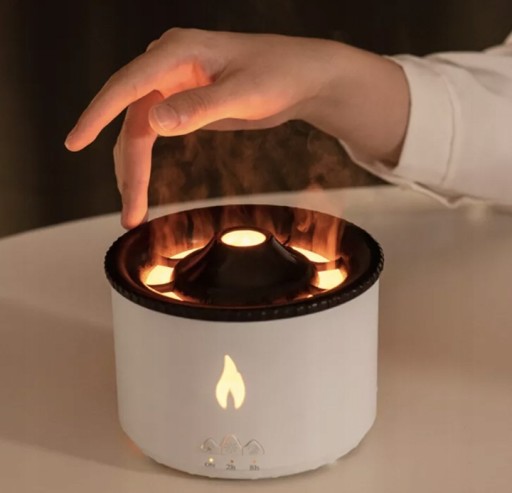 - WIELE TRYBÓW- Możesz wybrać między trybem płomienia, a trybem wulkanu za pomocą przycisku włączania/wyłączania. Dyfuzor posiada wbudowane inteligentne diody LED, które są zaprojektowane, aby stworzyć realistyczny efekt płomienia 3D. Do tego można wybierać pomiędzy 2 kolorami (ognisty i niebieski) oraz wybrać ustawienia automatycznego wyłączenia (2 i 4 godziny).