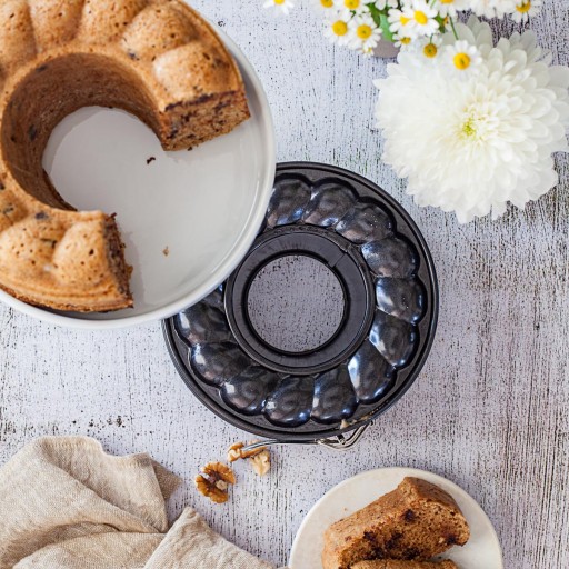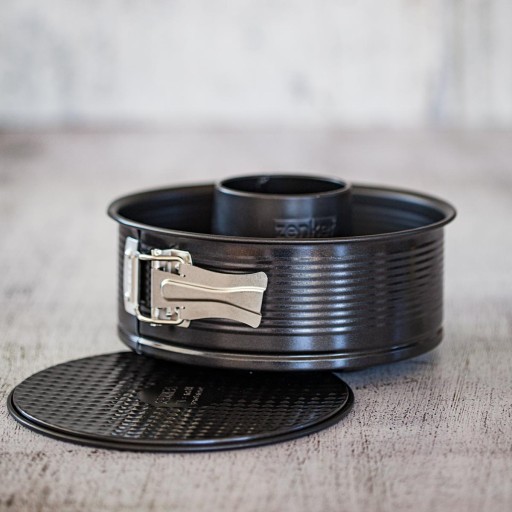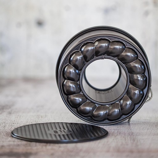 Dzięki tej tortownicy Varoma możesz w Varomie przygotować idealne ciasto w Monsieur Cuisine Connect Smart Trend. Klasyczna forma do pieczenia z płaskim dnem i rurką ma średnicę zewnętrzną ok. 18,5 cm i wysokość ok. 6,5 cm. Oznacza to, że idealnie pasuje do pojemnika Varoma w Monsieur Cuisine Connect Smart Trend. W razie potrzeby w pierścieniu można „przypiąć” wkładkę płaską lub rurową. Zewnętrzna strona mieni się subtelnym metalicznym efektem, co nadaje tortownicy elegancki wygląd. Czarna powłoka nieprzywierająca Teflon® Classic od wewnątrz zapewnia bardzo dobre efekty pieczenia. Gwarantuje także łatwe wyjmowanie z formy i ułatwia ręczne czyszczenie formy . Pierścień sprężynujący ma wytłoczenie w kształcie rowka, które zapewnia mu szczególną stabilność. Dzięki temu jest to idealna tortownica do ciast w Monsieur Cuisine Connect Smart Trend prosto z Varomy!