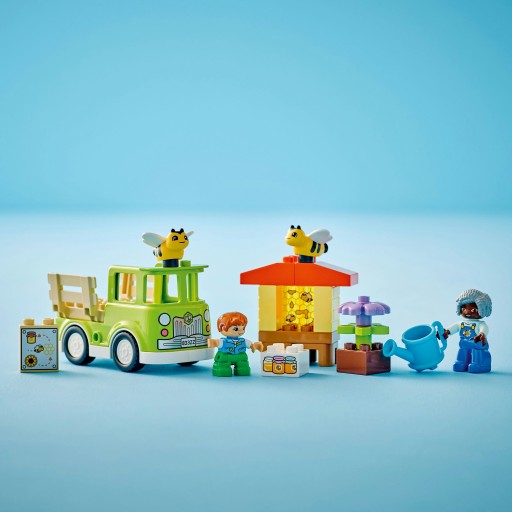 Maluchy rozwijają koordynację wzrokowo-ruchową, budując łodygi kwiatków, które dzięki temu rosną. Dzieci czeka wiele godzin zabawy w odgrywanie ról, kiedy będą sobie wyobrażać pszczółki zbierające nektar, a następnie wracające do ula, aby wyprodukować miód. W zestawie są też dwie figurki LEGO DUPLO. Przedszkolaki pomagają im zebrać miód, załadować go na zabawkową furgonetkę i zawieźć na rynek.