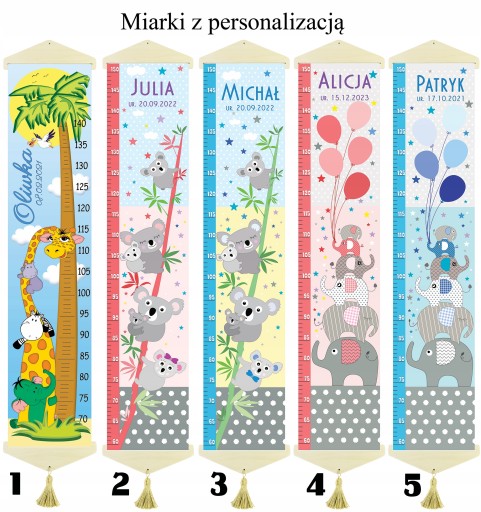 Miarka dostępna jest w różnych wersjach graficznych. W tym także z personalizacją (np. imię, imię i data urodzenia itp ).