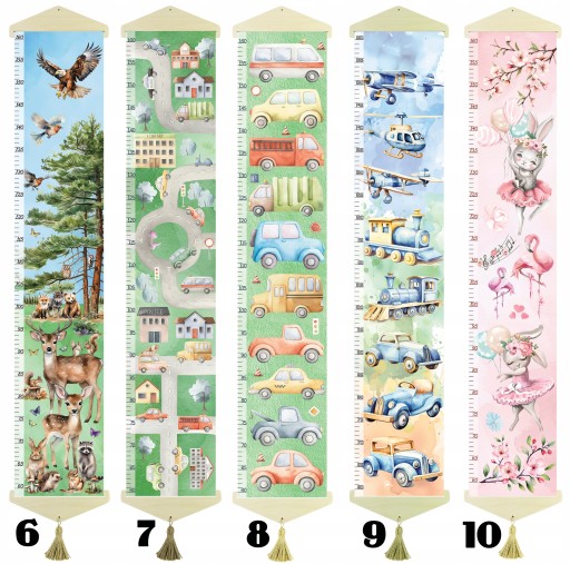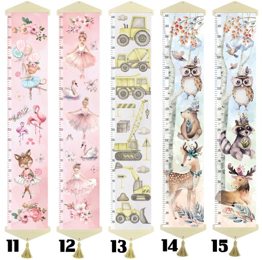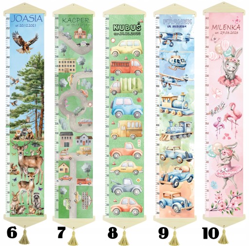 Oryginalna miarka wzrostu dla dzieci, drukowana na wysokiej jakości grubym płótnie bawełnianym canvas.