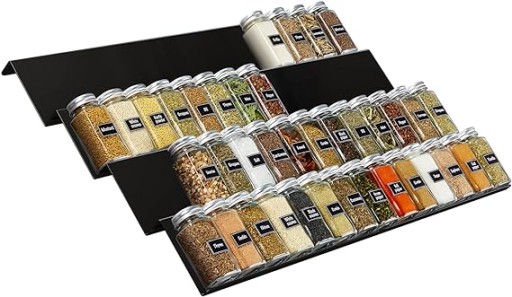 - Łatwe do Znalezienia: Zestaw 4 poziomów organizatora słoików z przyprawami może pomieścić 64 standardowe butelki z przyprawami. Ten nachylony projekt pozwoli ci widzieć przechowywanych przyprawowych słoików na spojrzenie, i znajdować co ty potrzebujesz. Poprawia wykorzystanie przestrzeni z tym magazynem szuflady i organizuje twój kuchenną przestrzeń lepiej.