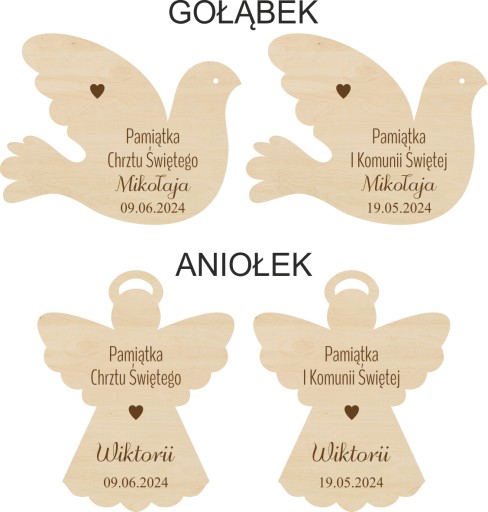 - imię dziecka - odpowiednio odmienione (jeśli zostanie podane imię np "Mikołaj" to właśnie tak zostanie wygrawerowane)